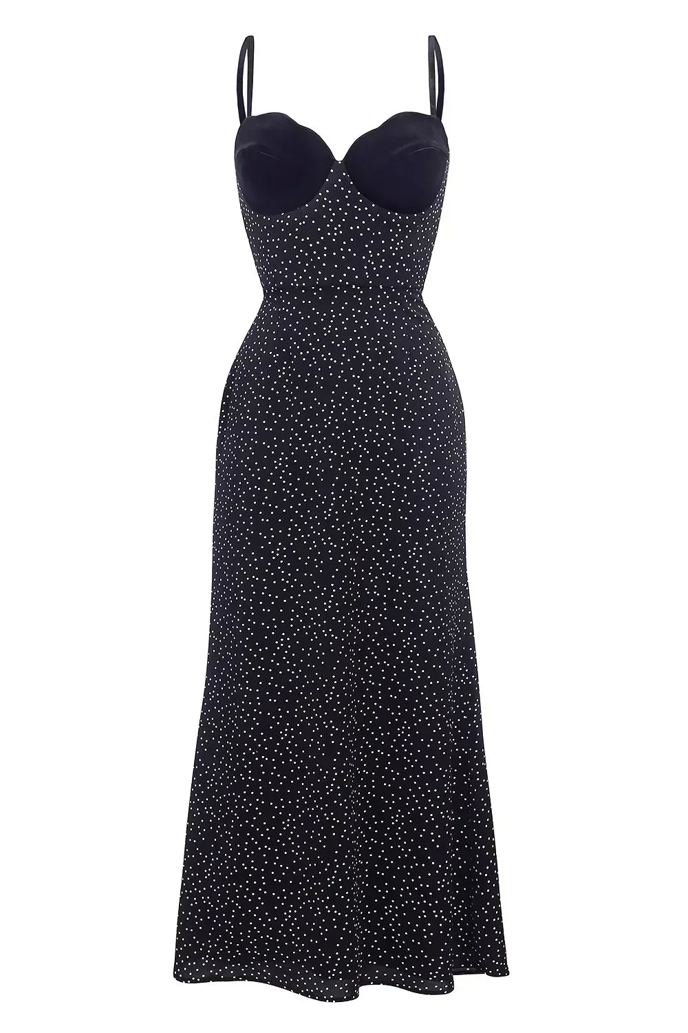 The Selina™ Midi Dress combines timeless elegance with a touch of modern romance. The delicate satin fabric softly drapes over your figure, enhanced by the flattering bustier-style bodice with velvet cups. A subtle polka dot pattern throughout adds a playful yet sophisticated detail, while the adjustable straps provide a customised fit.